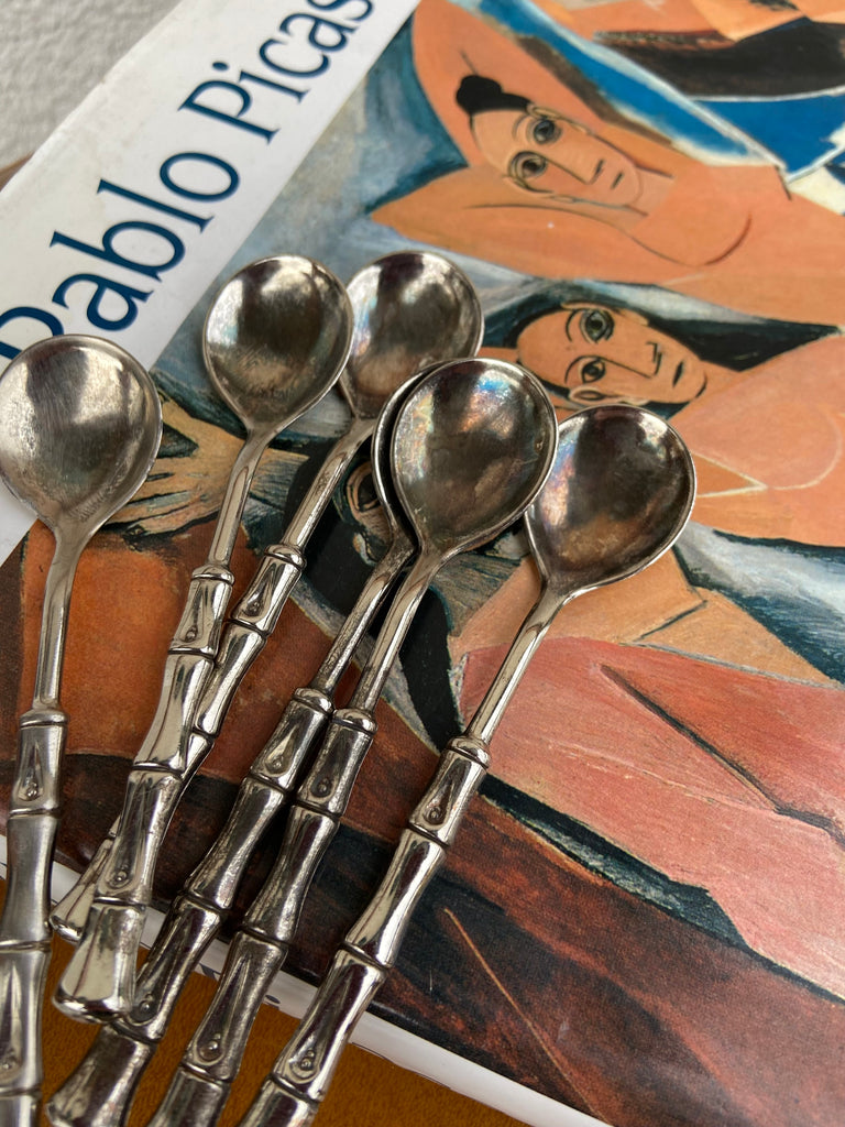 „Mid-Century“ sidabru dengti šaukšteliai su bambuko imitacijos rankenėlėmis. 6vnt.