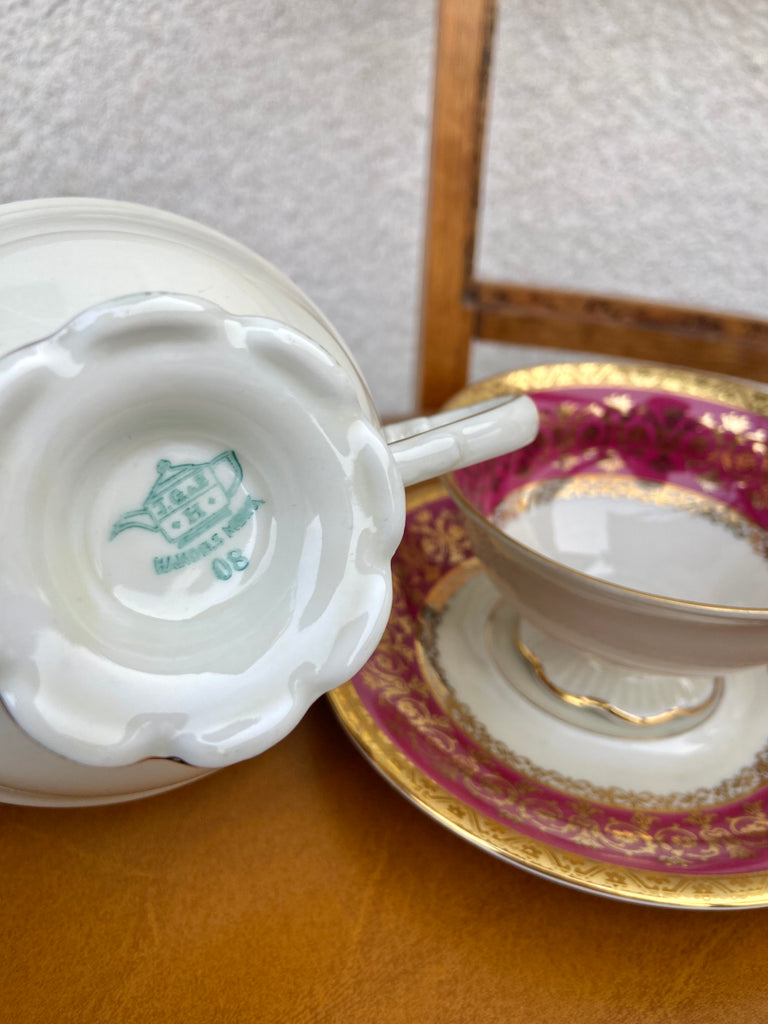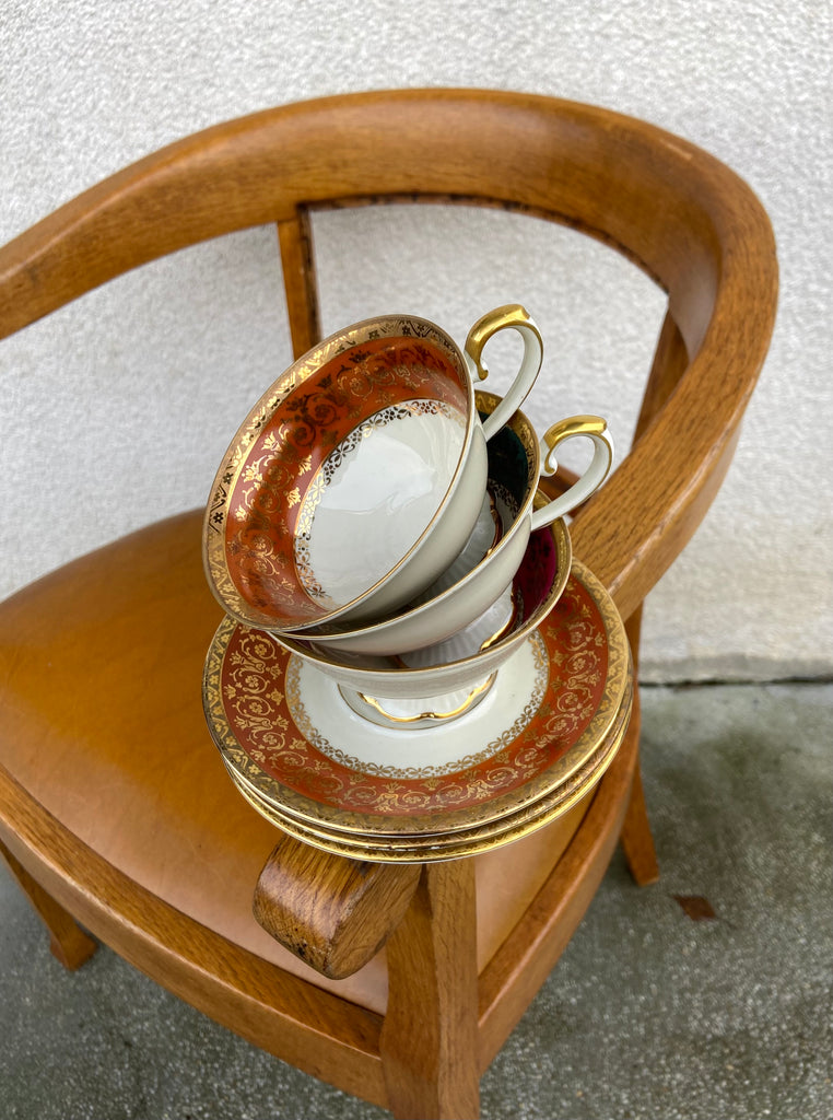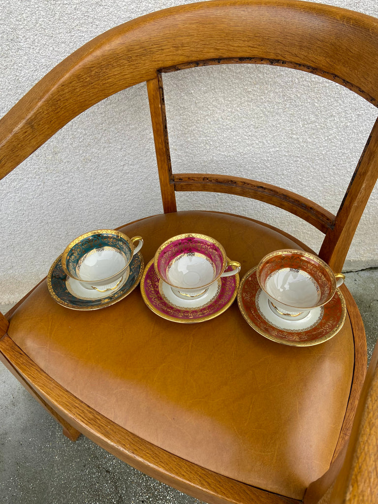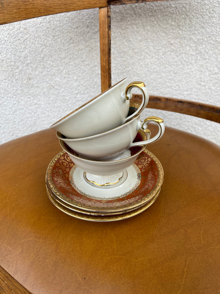 TRYS PORCELIANINIAI PUODELIAI SU LĖKŠTUTĖMIS