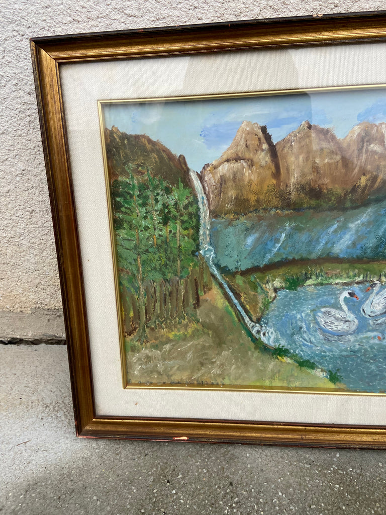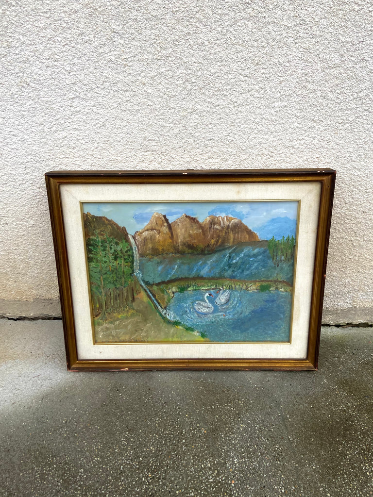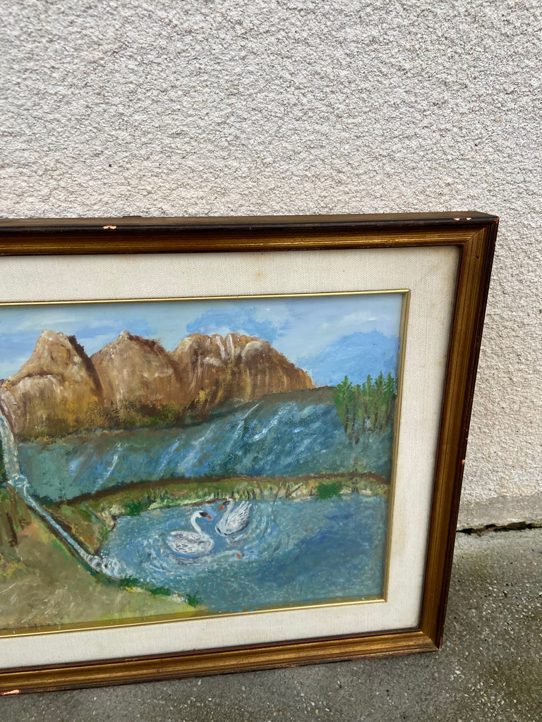 Medžiaga / tapyba, rėmas medinis, įstiklintas