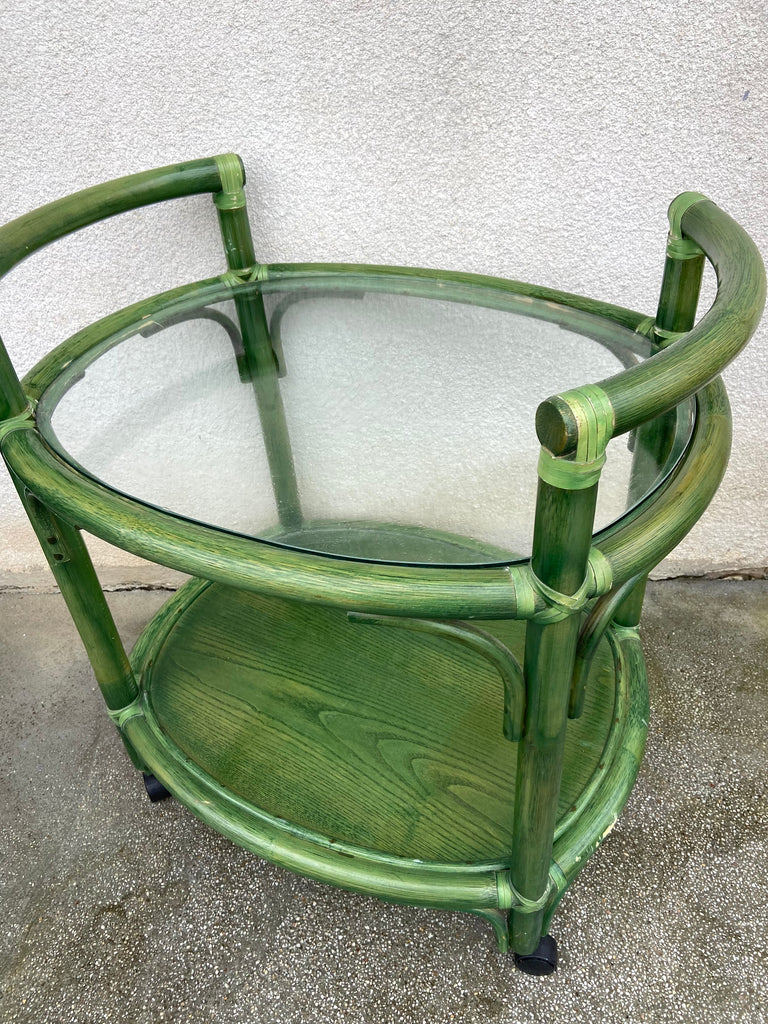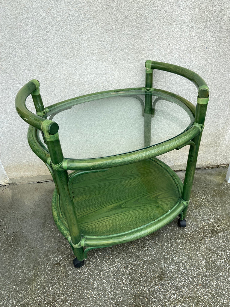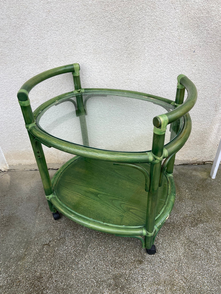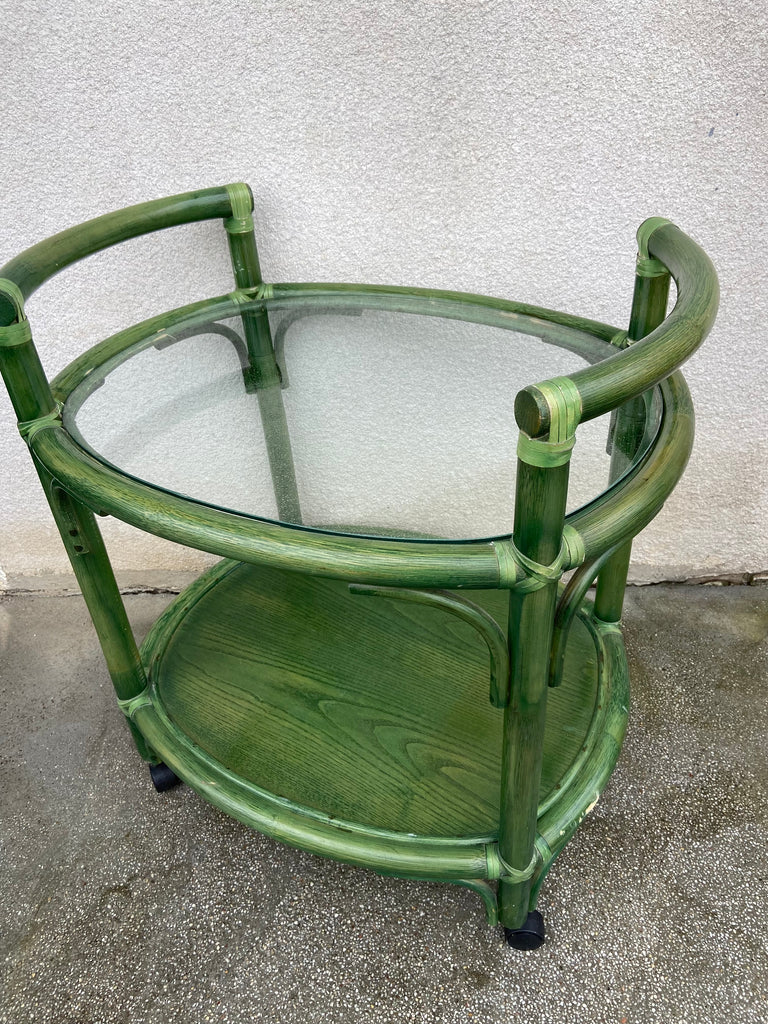Medžiaga / ratanas, bambukas, apatinė lentyna medžio plokštė, viršutinė - stiklas.