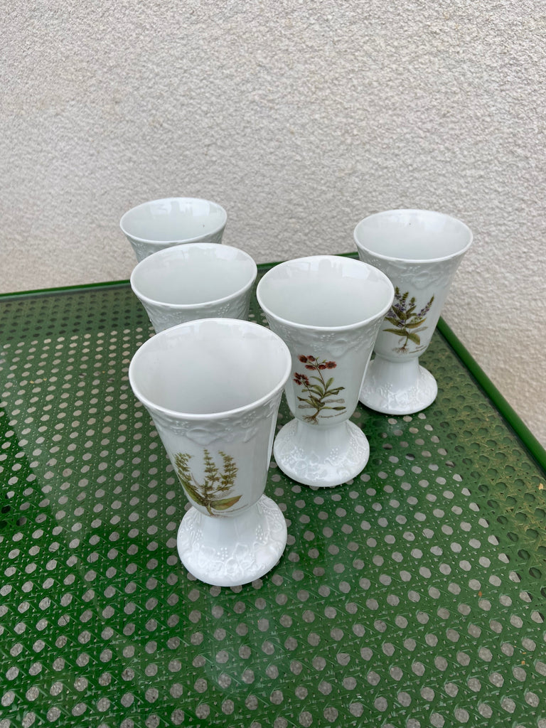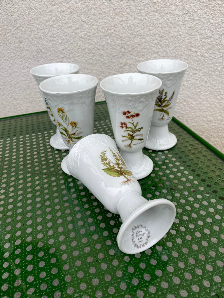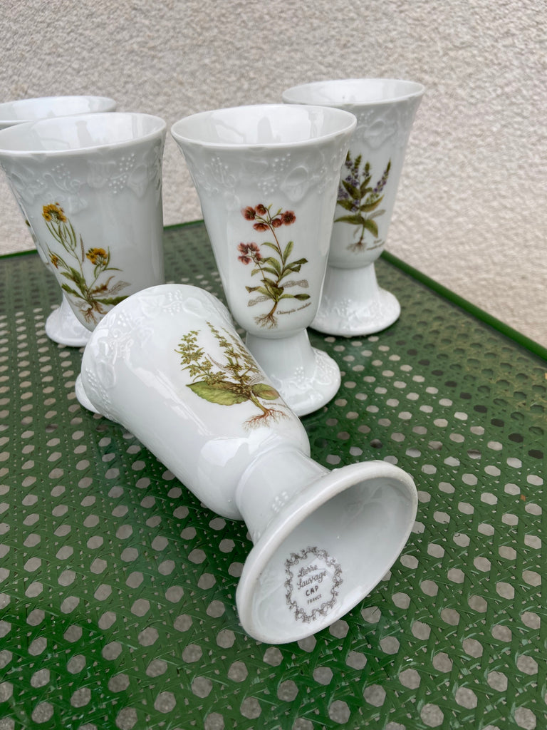 Vintažiniai prancūziški CAP France porceliano puodeliai „Lierre Sauvage“. 5vnt.